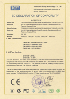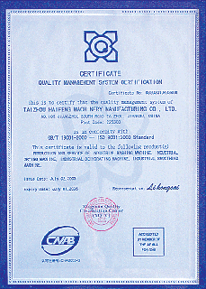 泰州市海鋒機(jī)械制造有限公司通過(guò)ISO9001國(guó)際質(zhì)量管理體系認(rèn)證、歐盟89/392EEC機(jī)械安全指令認(rèn)證(CE認(rèn)證),企業(yè)擁有自營(yíng)進(jìn)出口貿(mào)易權(quán)。